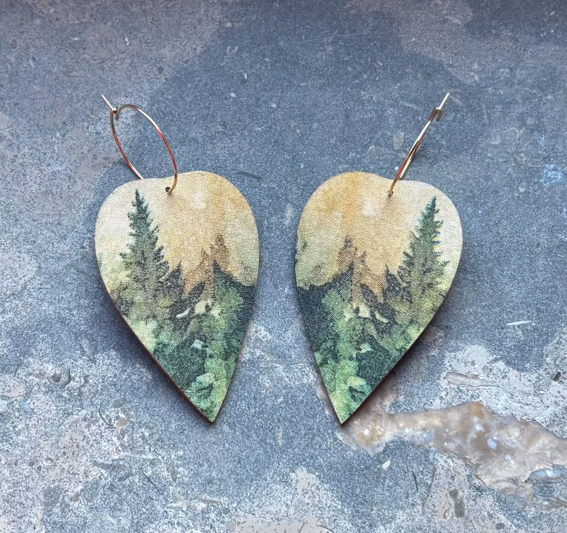 Storlek: 6.8 cm (själva hänget är 5.2 cm). Mönster på båda sidorna. Målade kanter i guldfärg. Creoler i rostfritt stål - nickelsäkra och färgbeständiga.