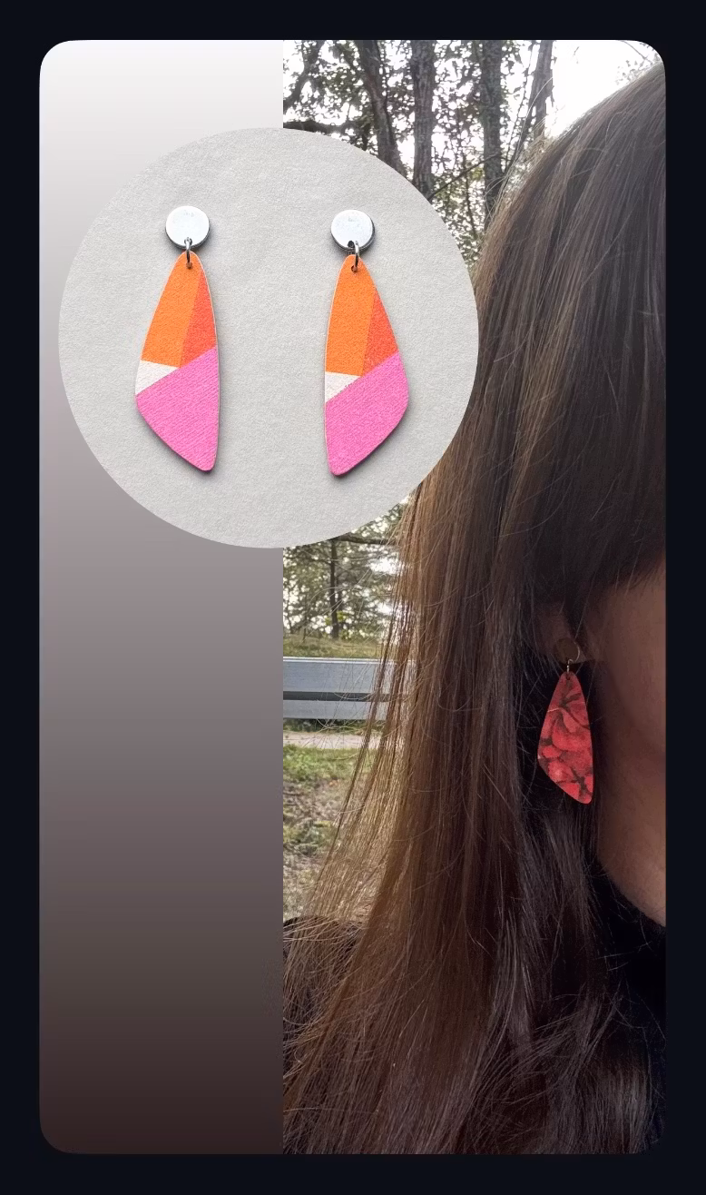 Storlek: 5 cm. Mönster på båda sidorna. Naturvita handmålade kanter. Stift i rostfritt stål - nickelsäkra och färgbeständiga. Du kan välja om du vill ha silver- eller guldfärgade stift. Skriv under ”meddelande” i kassan vilken färg du önskar.